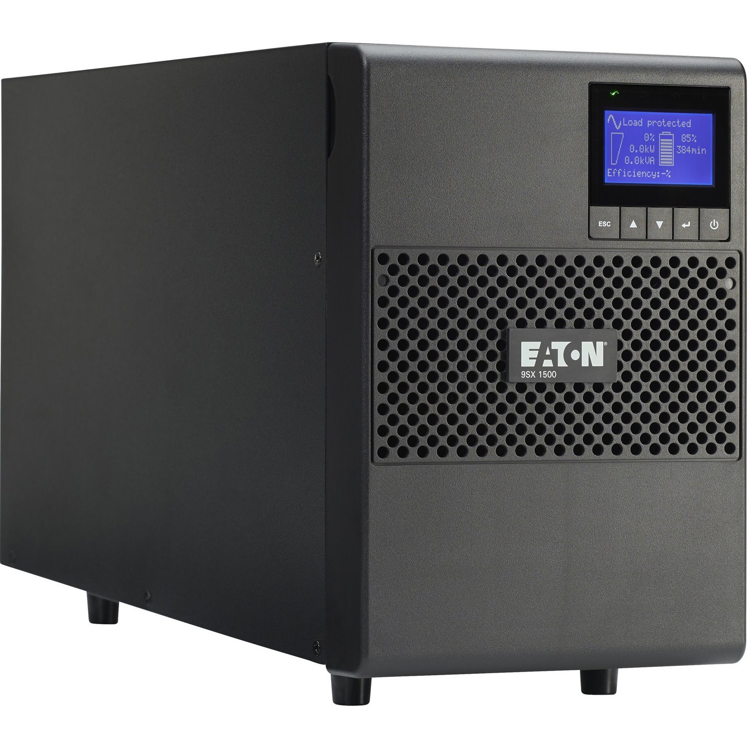 This 9SX on-line double-conversion UPS system maintains perfect output by converting AC input to DC, then reconverting UPS output to fully regulated sine wave AC. Featuring surge suppression, true on-line operation with pure sine wave output and zero transfer time between on-line and battery modes, the 9SX1500 provides the highest level of AC power protection and battery backup for medical, light industrial, automation and other mission-critical IT applications where space is limited, but premium power reliability is essential.